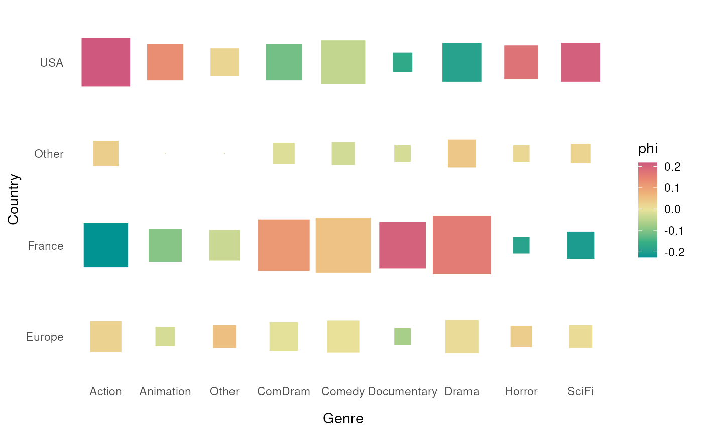 character. The measure of association used for filling the rectangles. Can be "phi" for phi coefficient (default), "or" for odds ratios, "std.residuals" for standardized residuals, "adj.residuals" for adjusted standardized residuals or "pem" for local percentages of maximum deviation from independence.